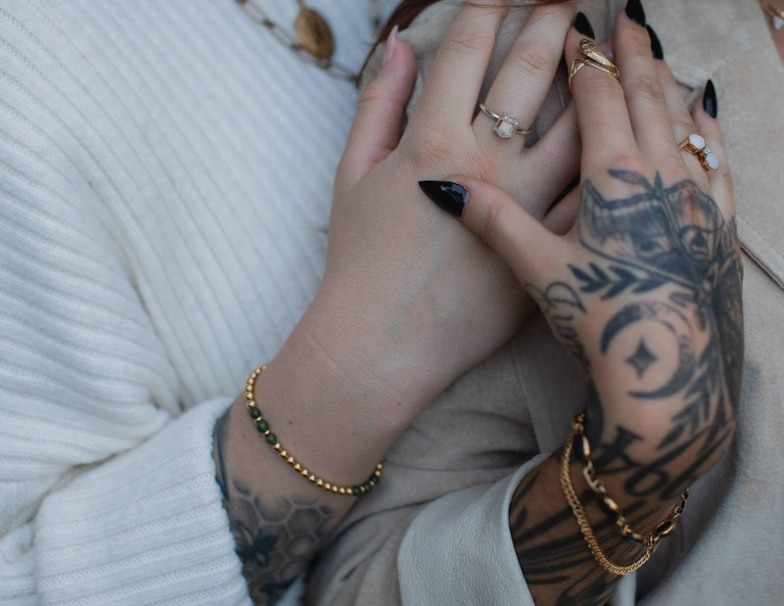 Looking for the perfect gold-filled, classic yet trendy bracelet? We've got you covered with our deadstock vintage jade and gold-filled beaded bracelet. Originally made by Danecraft in the 1950s, the beads are strung on thin gold-filled chain, making this a practical and beautiful piece.