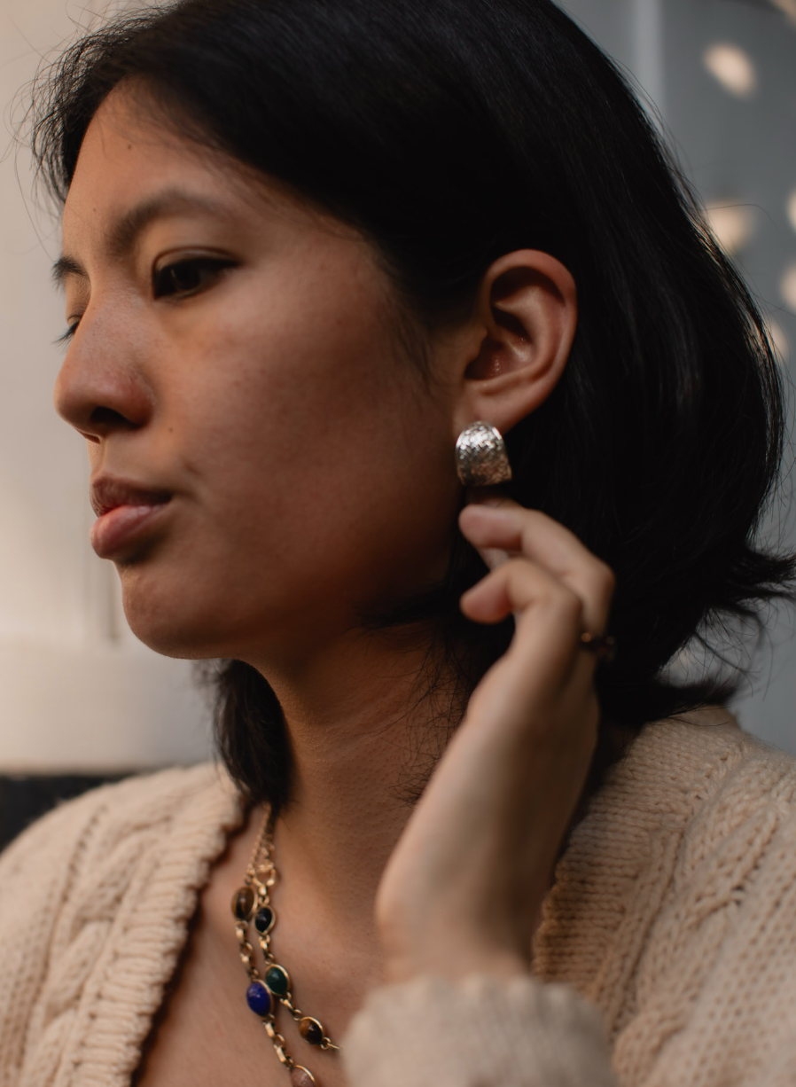 We love these vintage-inspired textured sterling silver hoops that remind us of wicker furniture and the classic art of weaving.