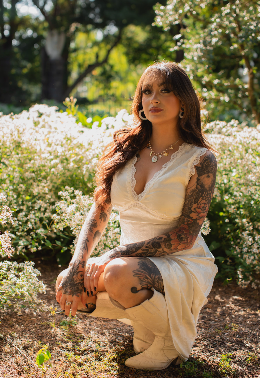 16" in length, center pendant measures 1" in length. Pops of gold set onto a silver background chain.