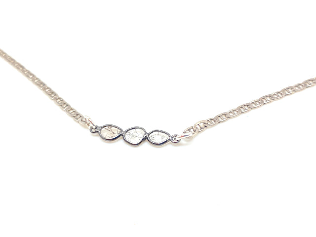 ✴ 3 Flat Diamond Slices with natural inclusions, set in Rhodium Plated .925